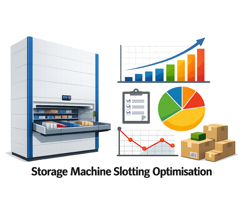 Storage machine slotting optimisation is the strategic arrangement of products within your storage machines to speed up order picking, maximise utilisation, and reduce wear and tear.